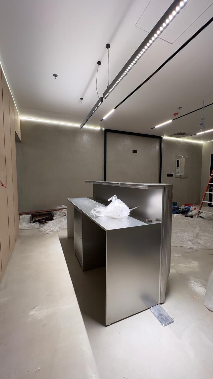 The Neo Care Dental Clinic project embodies a minimalist, futuristic aesthetic, combining refined materials with precise detailing to create a sophisticated and calming healthcare environment. Walls and flooring finished in smooth micro-concrete set a sleek, monolithic backdrop, complemented by concealed lighting that enhances depth and geometry throughout the corridors and treatment areas.